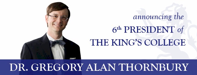Dr. Gregory Alan Thornbury (GAT) was recently named the sixth president of The King’s College in New York City. He took some time to chat with me on the phone on September 30th and discuss . . . a little bit of everything, you might say.