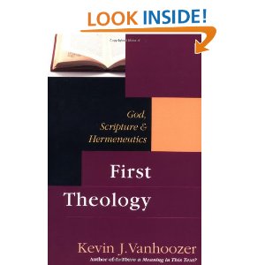The book, as the subtitle explains, is broken down into three parts: God, Scripture, and Hermeneutics. The book begins with an introduction where Vanhoozer establish his terms more clearly. “First theology” refers to the approach to theology that views the “questions of God, Scripture, and hermeneutics as one problem.” It is “a plea for being hermeneutical about theology, and for being theological about hermeneutics” (9). So do we begin with God or with the Word of God in doing our theological work? Neither, according to Vanhoozer. You begin with hermeneutics as the locus for understanding God and Scripture together. Theology, then, is simply “God-centered biblical interpretation” (10).